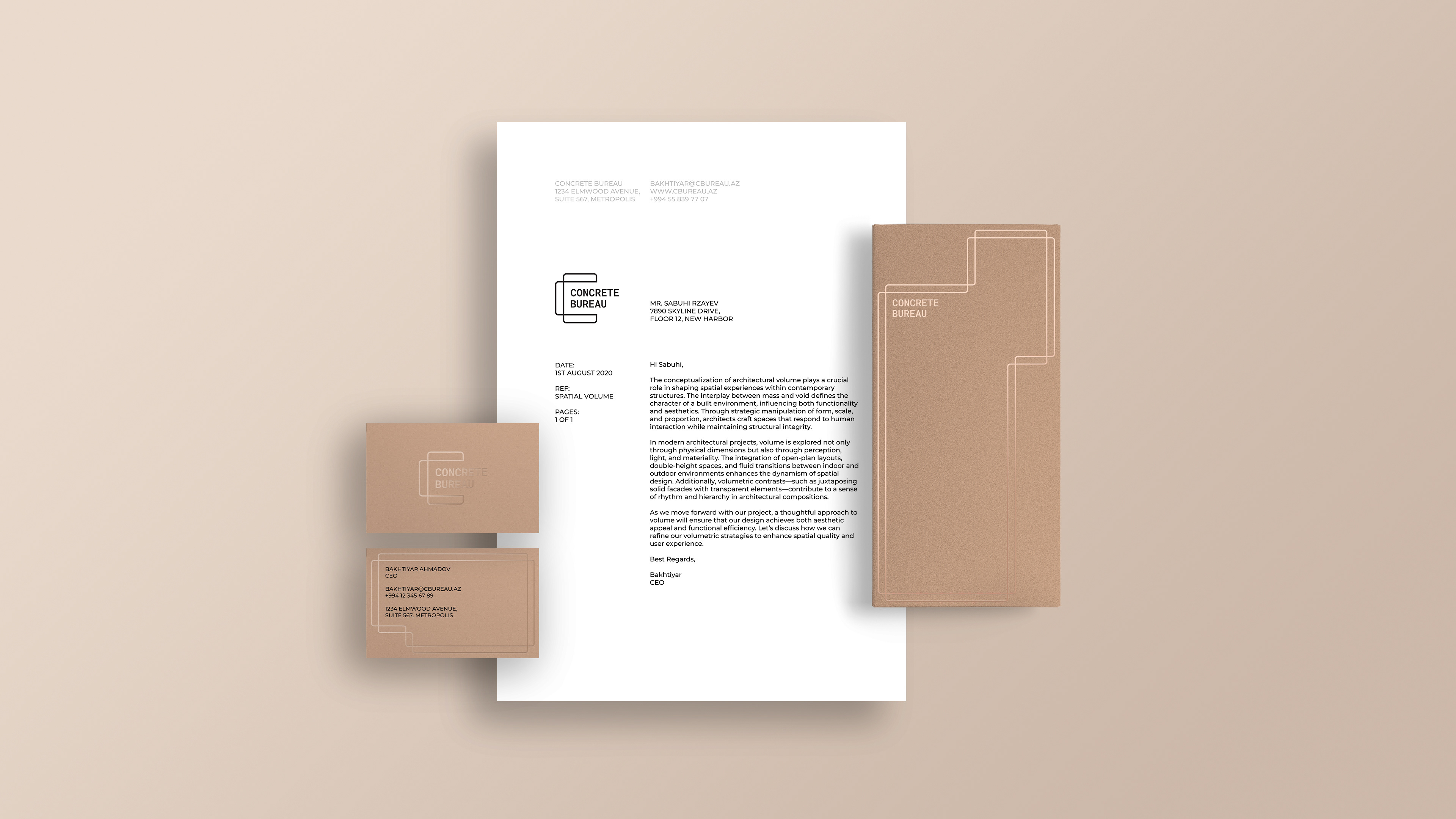 Concrete Bureau has been building since 1961. The identity reflects that — no decoration, no excess. The logo is drawn from the form of a vernier caliper, the C rendered as a tool of measurement and intention.