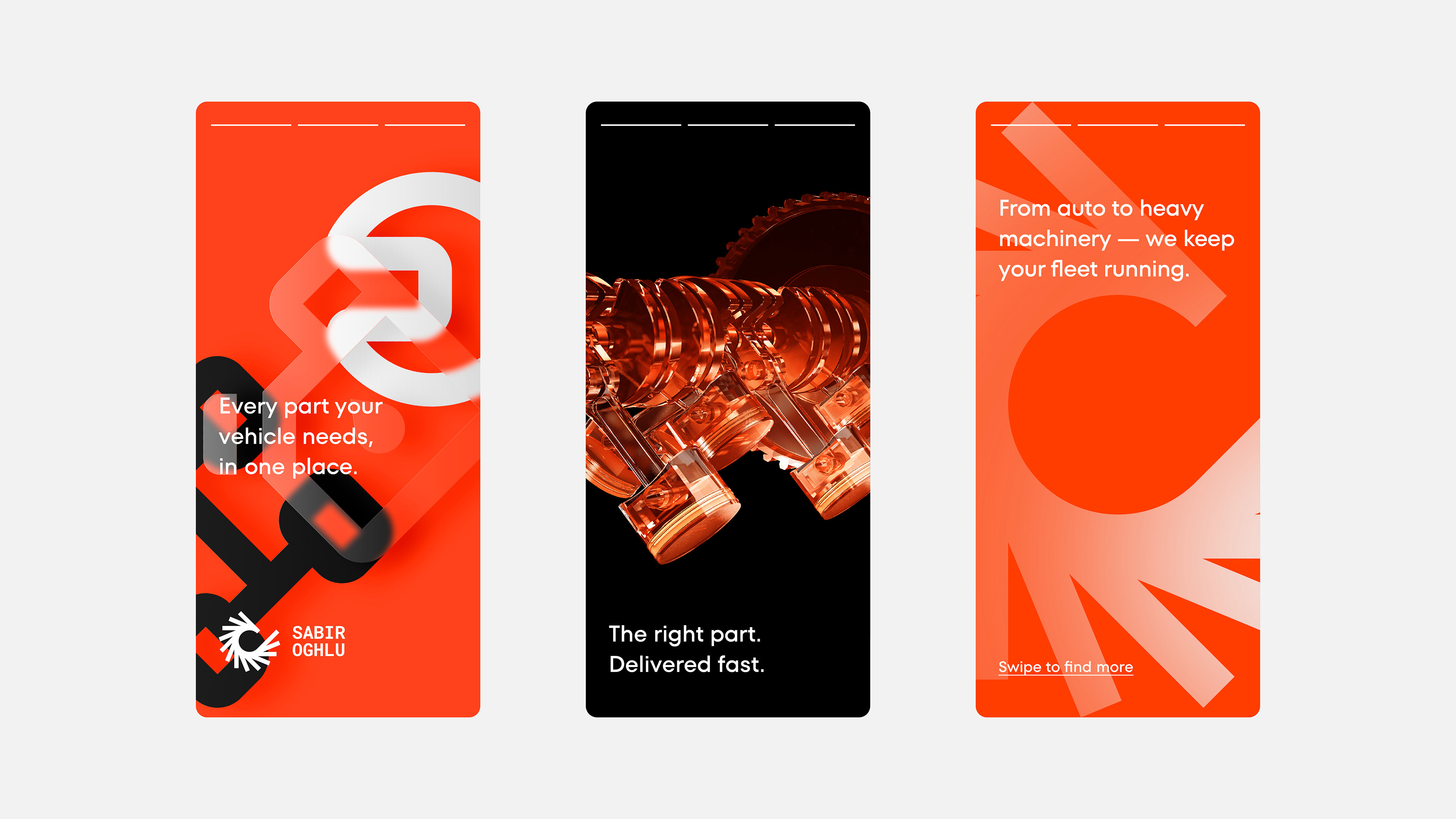 Sabiroghlu is a holding company operating across construction, parts, and beyond. The identity needed to reflect the scale of that — a brand built for multiple verticals under one name.