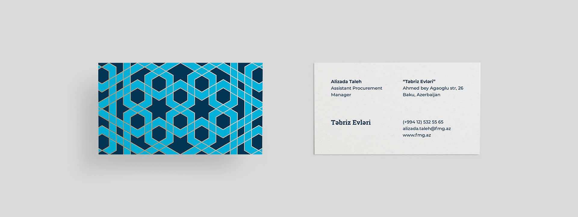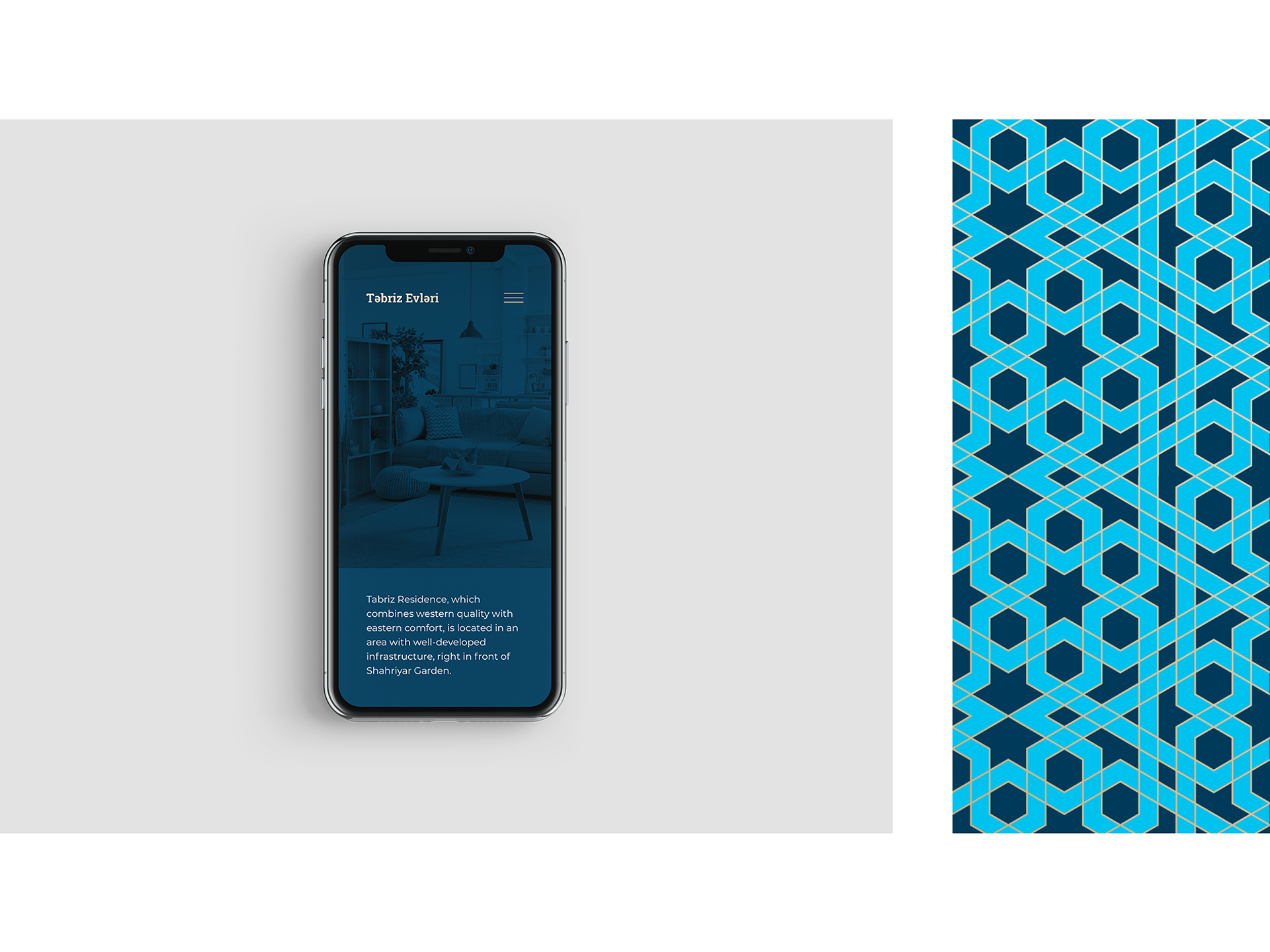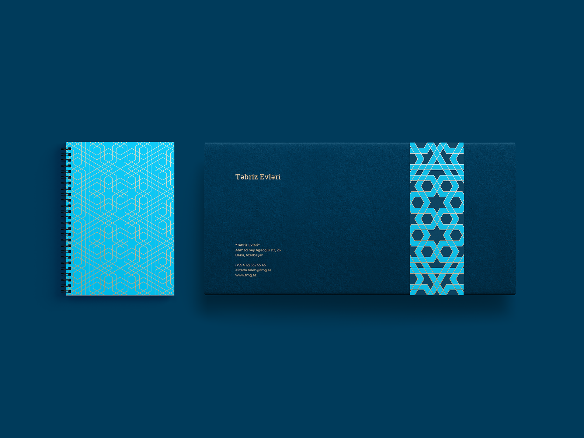 The visual identity for Təbriz Evləri (Tabriz Residence) draws from the architectural language of the Blue Mosque in Tabriz. Its color palette, ornamental geometry, and surface compositions were studied to extract structural principles rather than replicate decorative elements.