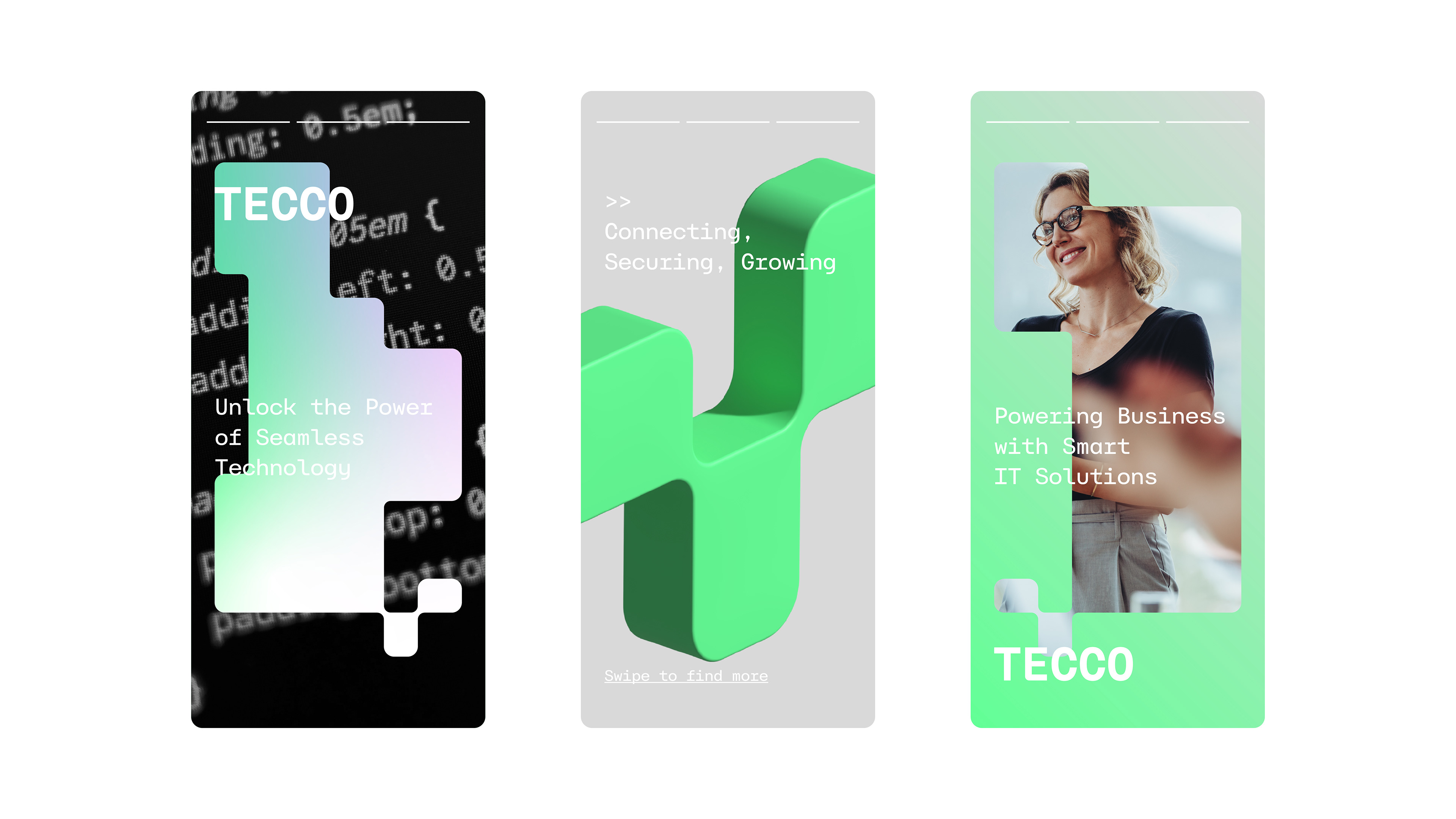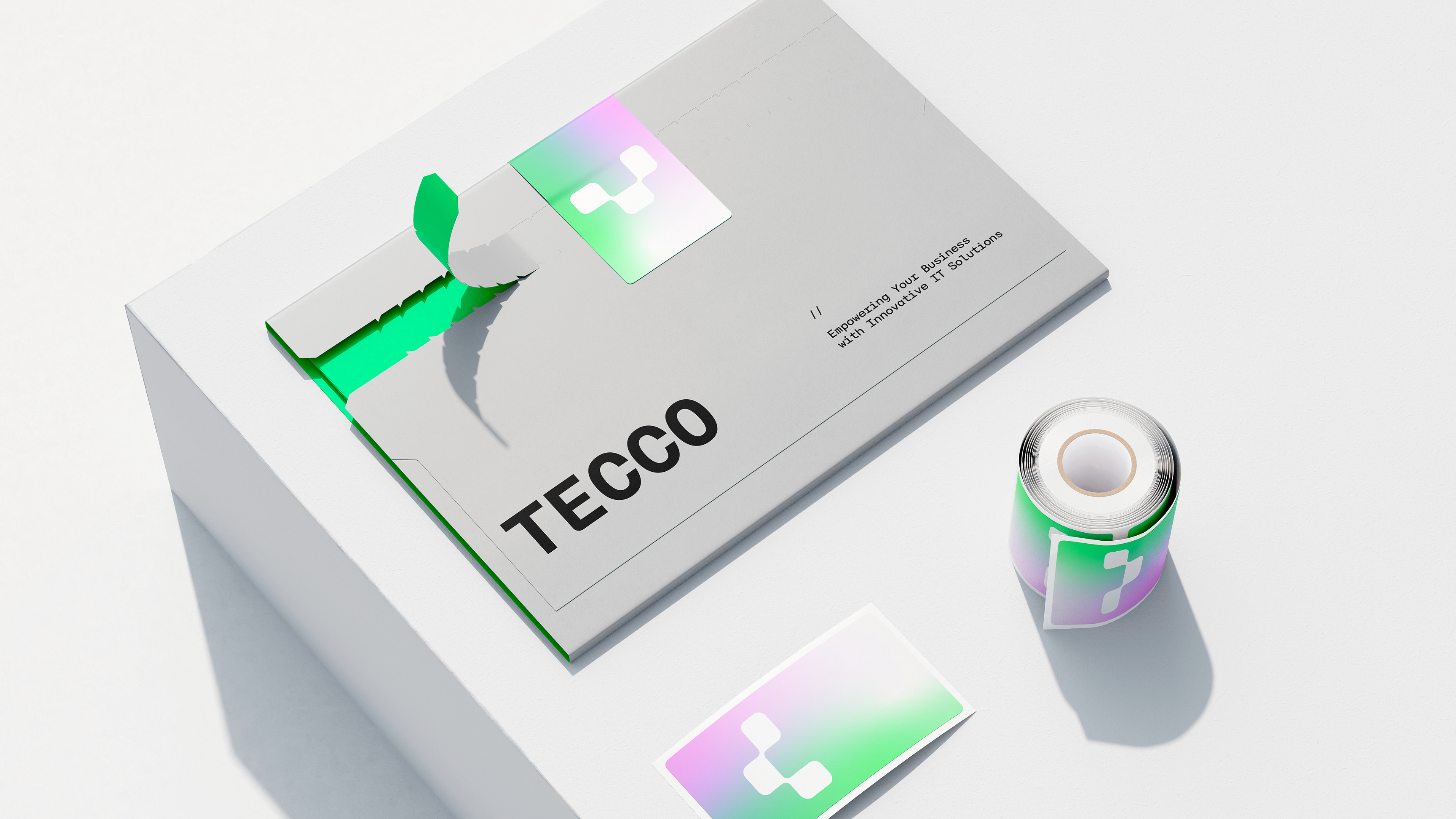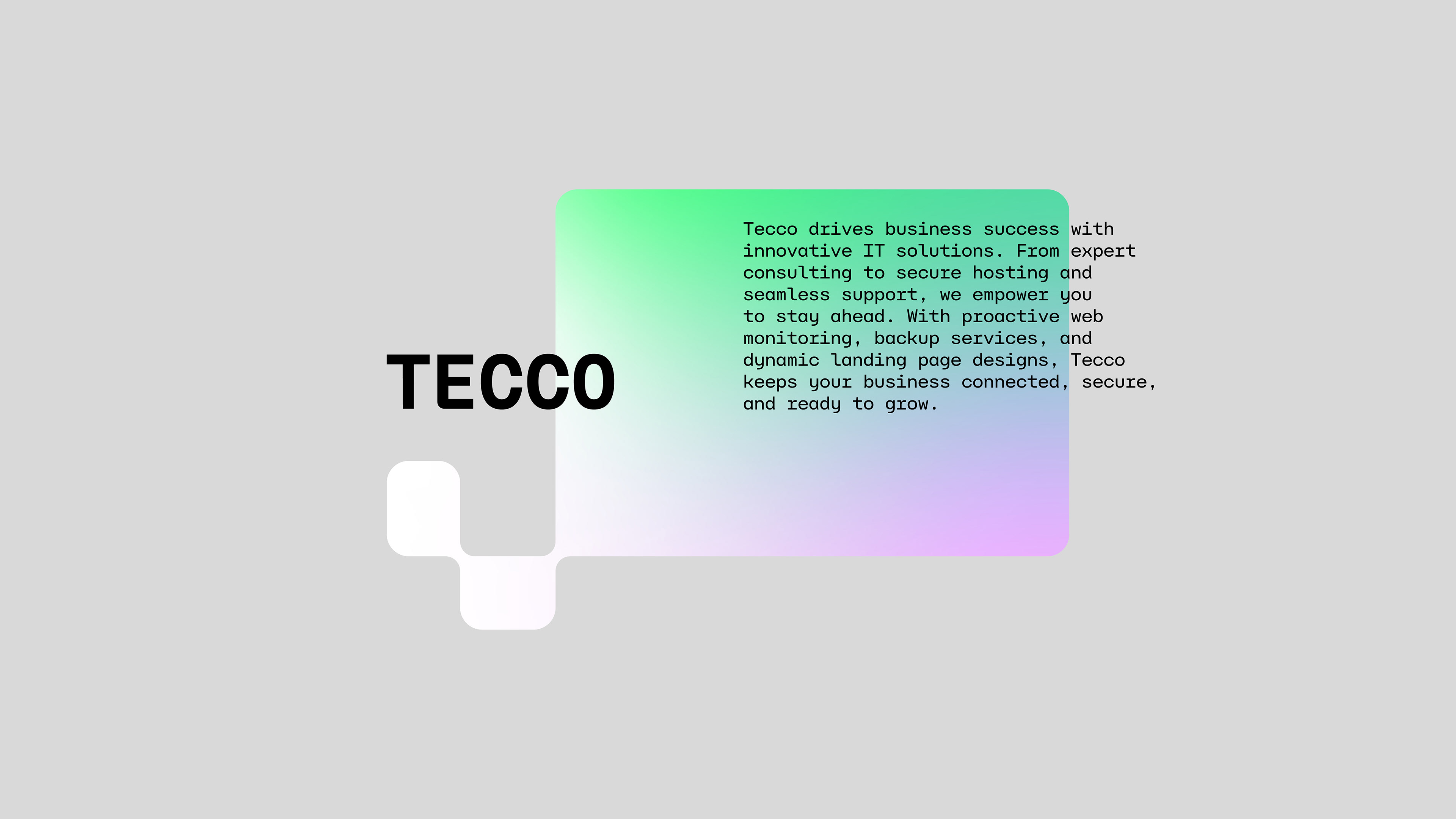 Tecco is an IT solutions company built around connectivity, security, and growth. The identity needed to reflect that — something technical but approachable, structured but flexible.